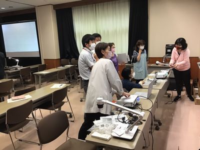 研修会では機器の接続方法から基本操作、実際の操作までグループに分かれて行い、研修を深めることができました。
