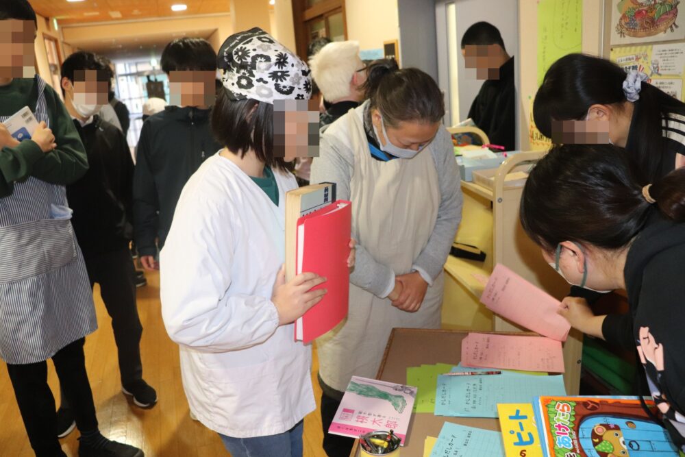 山梨県立盲学校 > 活動の様子 > 図書委員会 第3回移動図書 2025年12月9日カテゴリー: 活動の様子 図書委員会 第3回移動図書 12月9日(火)の昼休みに大食堂前の廊下で図書委員会による移動図書が行われました。 今回は、図書委員が作ったしおりもプレゼントしました。しおりは、点字のもの、クリスマスツリーをかたどったもの、盲学校のマスコット・もうてんあいちゃんのイラスト入りのものなど、みんなで協力して作りました。 寒い日が続きますが、本を読んで心を温めてほしいです。 触って楽しめるしおりです いつもは手に取らないジャンルの本を紹介しています 小学部と高等部が触れ合う機会にもなっています 読書カードも2枚目、3枚目に入った人もでてきました!