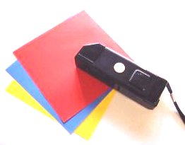 光センサーによって13種類(白,灰色,黒,赤,ピンク,茶色,オレンジ,黄色,緑,水色,青,紺色,紫)の色と,光の明るさを識別しし、音声と断続音の変化で知ることができる。 理科・図工・美術・家庭科などでの色の識別,さらには服装のコーディネーションなどに利用。 | ||